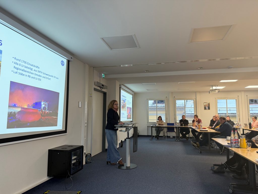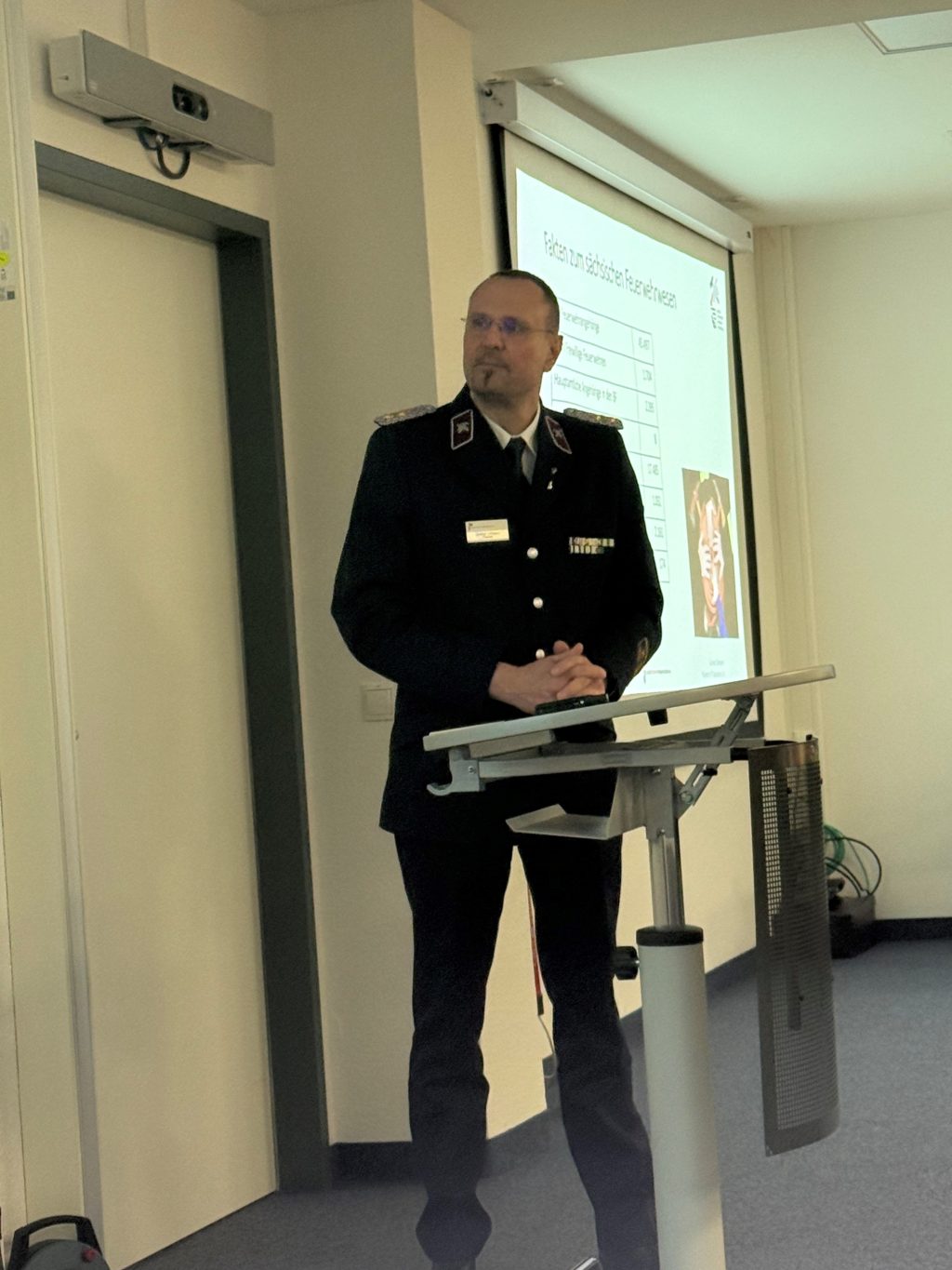 Als Gast wurde der Präsident des Feuerwehrverbandes Sachsen Gunnar Ullmann begrüßt, der einen interessanten Einblick in die Strukturen und Herausforderungen seiner Organisation lieferte. Man konnte viele gemeinsame Parallelen bei den Vorgehensweisen und den Einsätzen erkennen.